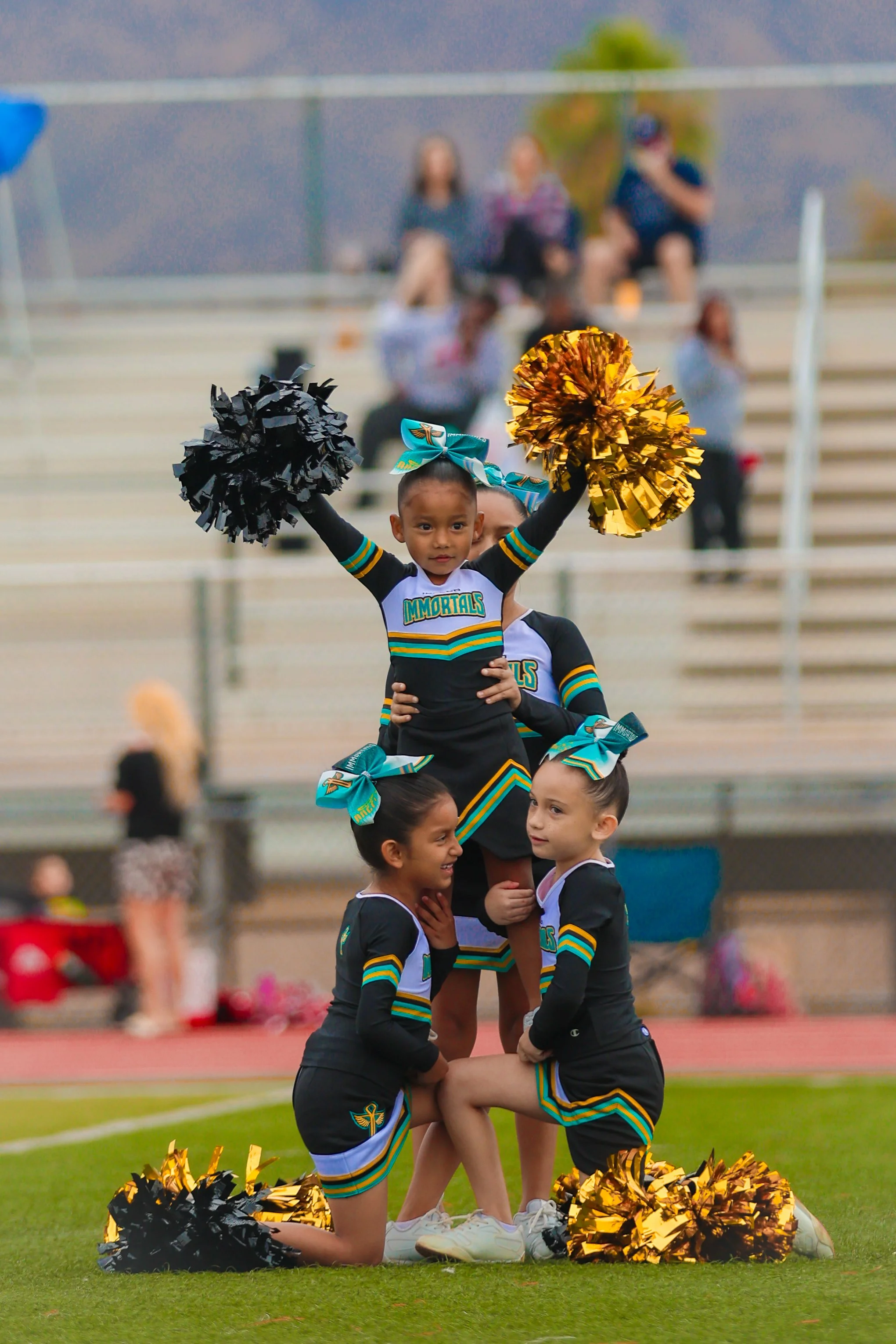At Inland Immortals, our cheer program is built on a foundation of technique, safety, discipline, and confidence. We are committed to developing complete athletes who perform with precision, strength, and pride while supporting their team and representing their community.