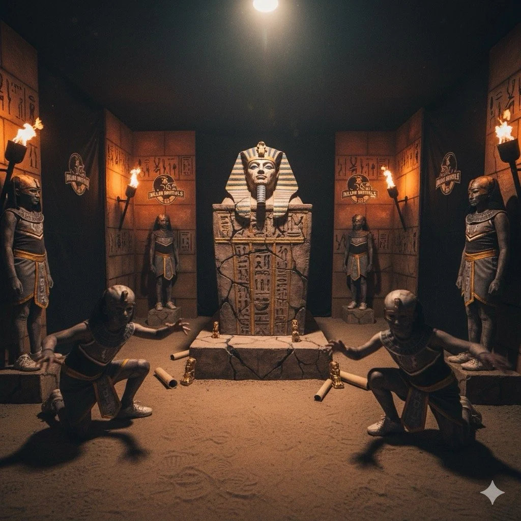 Guests who entered the maze journeyed through a series of creatively designed chambers inspired by ancient Egyptian legends and Immortals lore. The experience featured several themed rooms including the Scarab Swarm Room, Antechamber Mummification Tomb, Mummy’s Curse Room, Pharaoh’s Throne Experience, and the eerie Passage of Shadows.